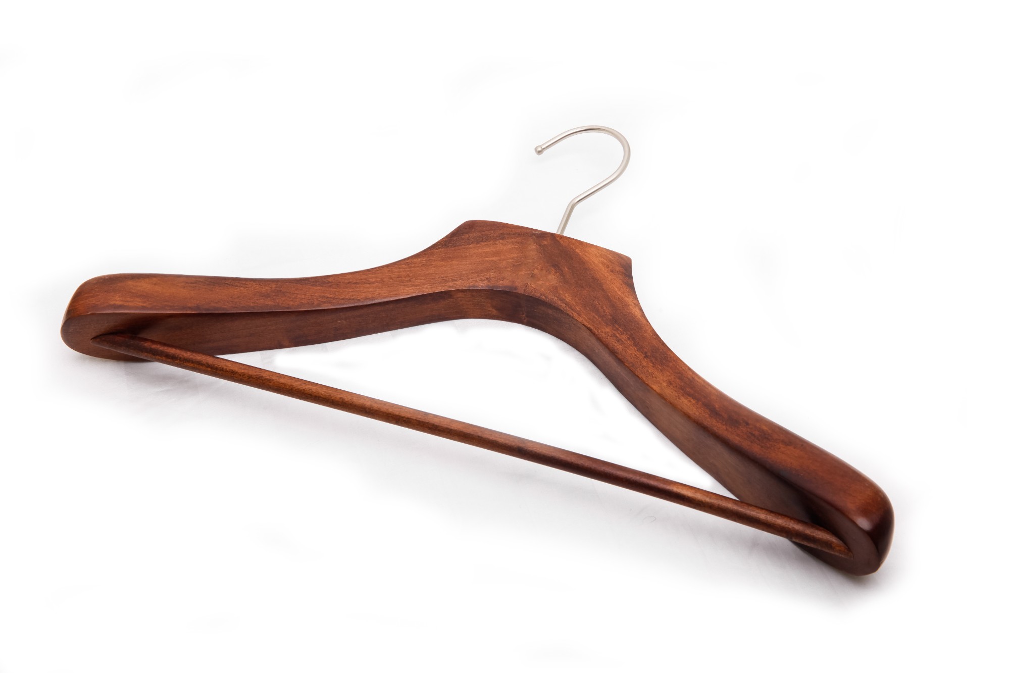 Wooden clothes hanger with Light Chrome hook or matte nickel hook for options.